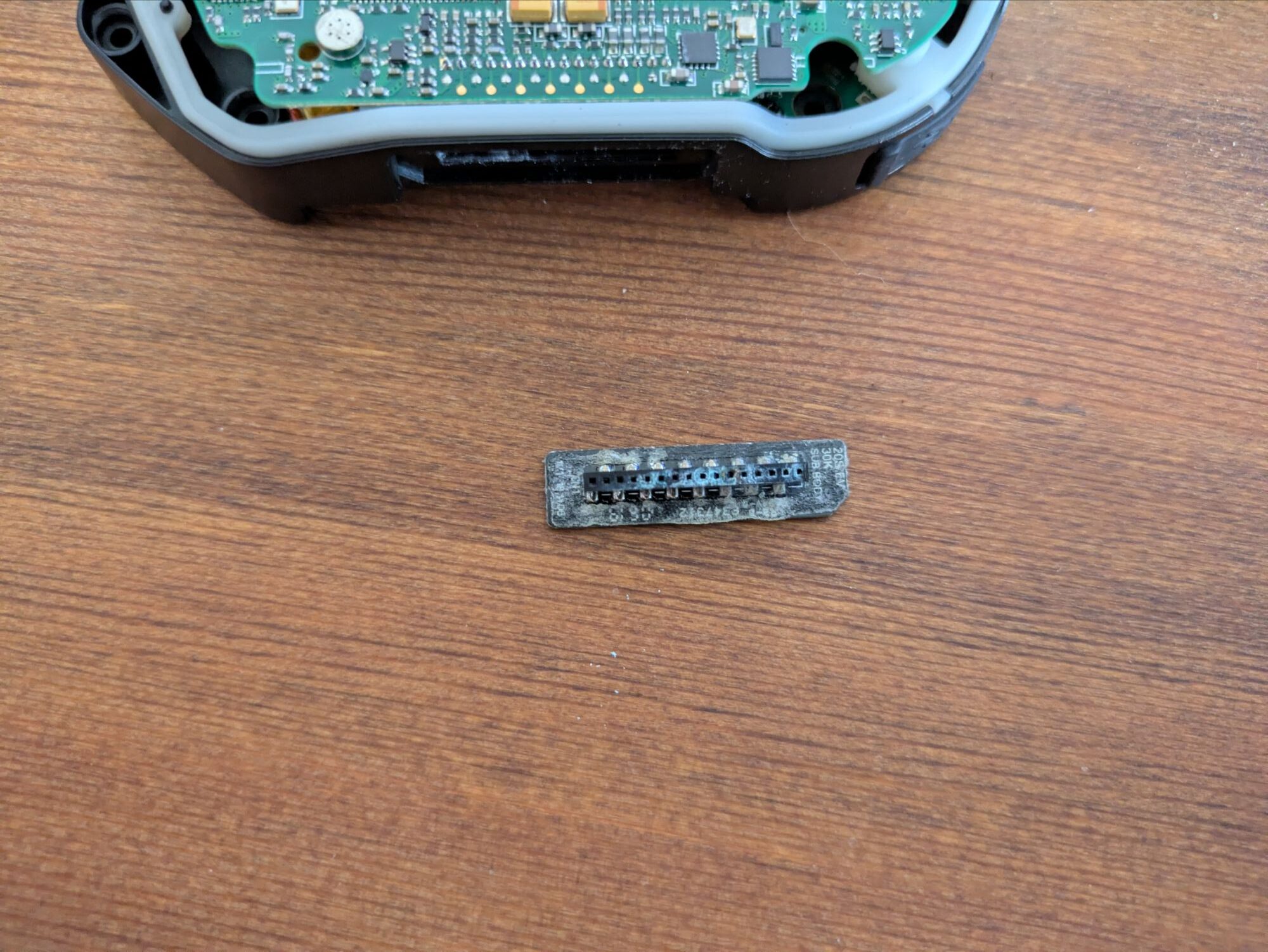 接続部分を剥がした様子。接着剤がついていたのか汚れております。