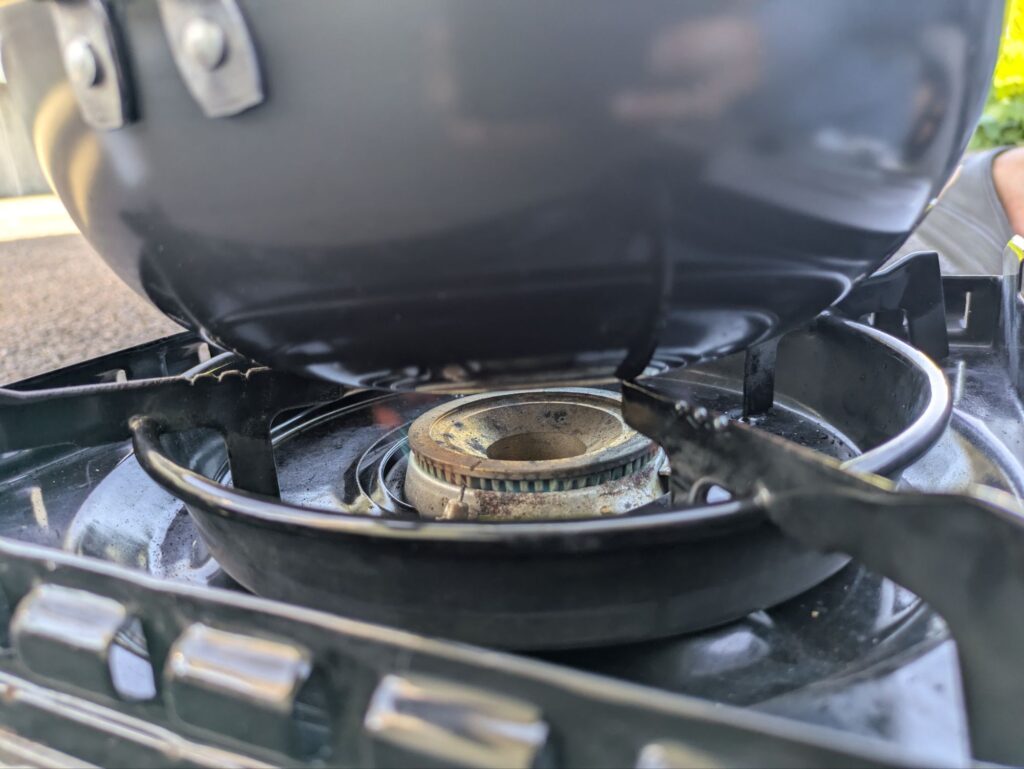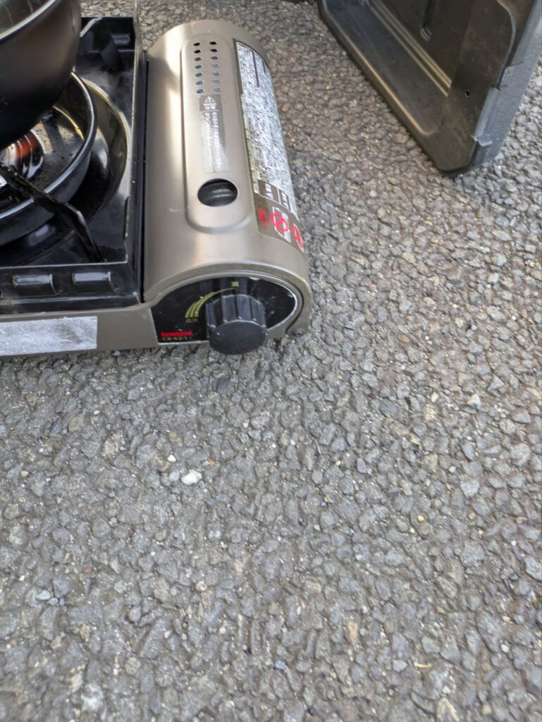 家庭用コンロの場合、一定時間加熱すると火力を落とす仕様になっているのがほとんどなのでカセットコンロを使用します。 - カセットボンベ