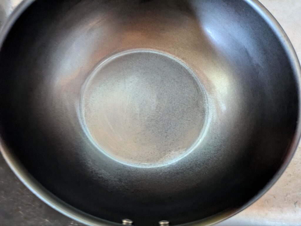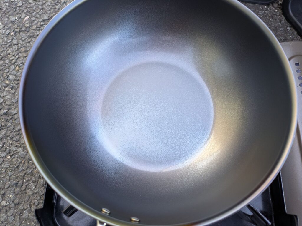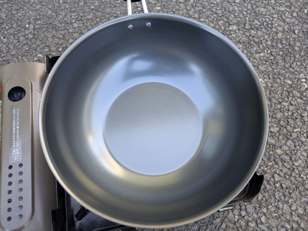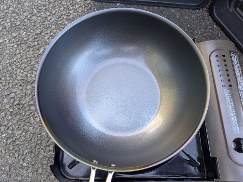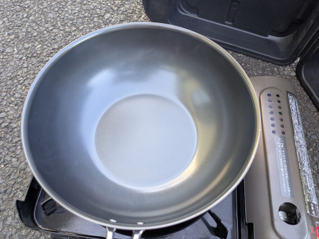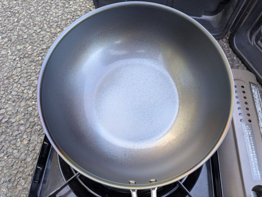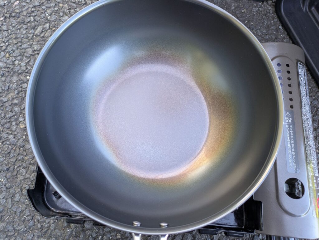 - 多めの油を注ぎ、加熱して油を本体になじませる(お玉1杯分)