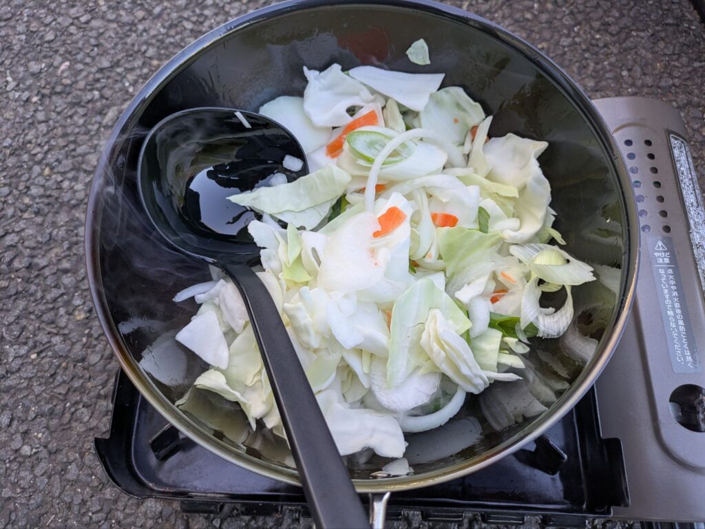 カット野菜を入れて野菜炒めを作る