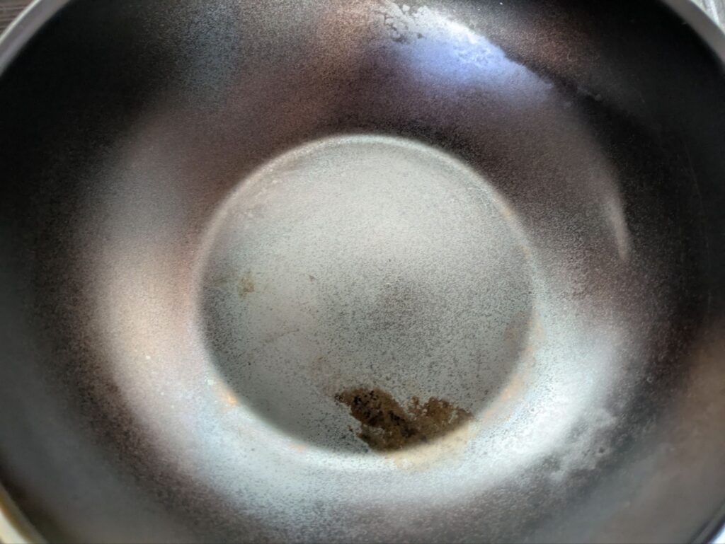 加熱が完了してフライパンが覚めたらタワシで内側を洗います。