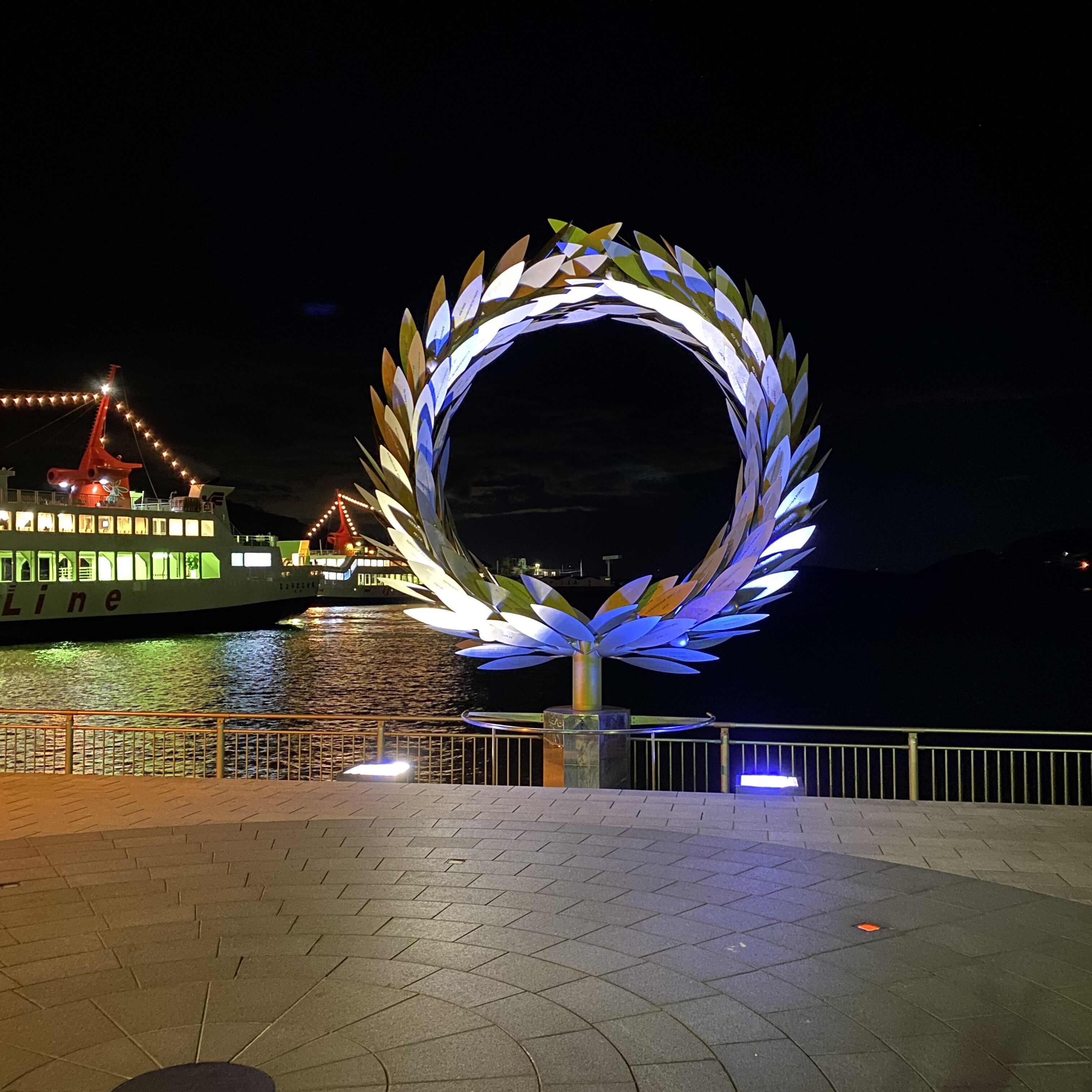 私は小豆島を出る時に土庄港を使いましたが、画像の通りのシンボルがキレイにライトアップされてました。