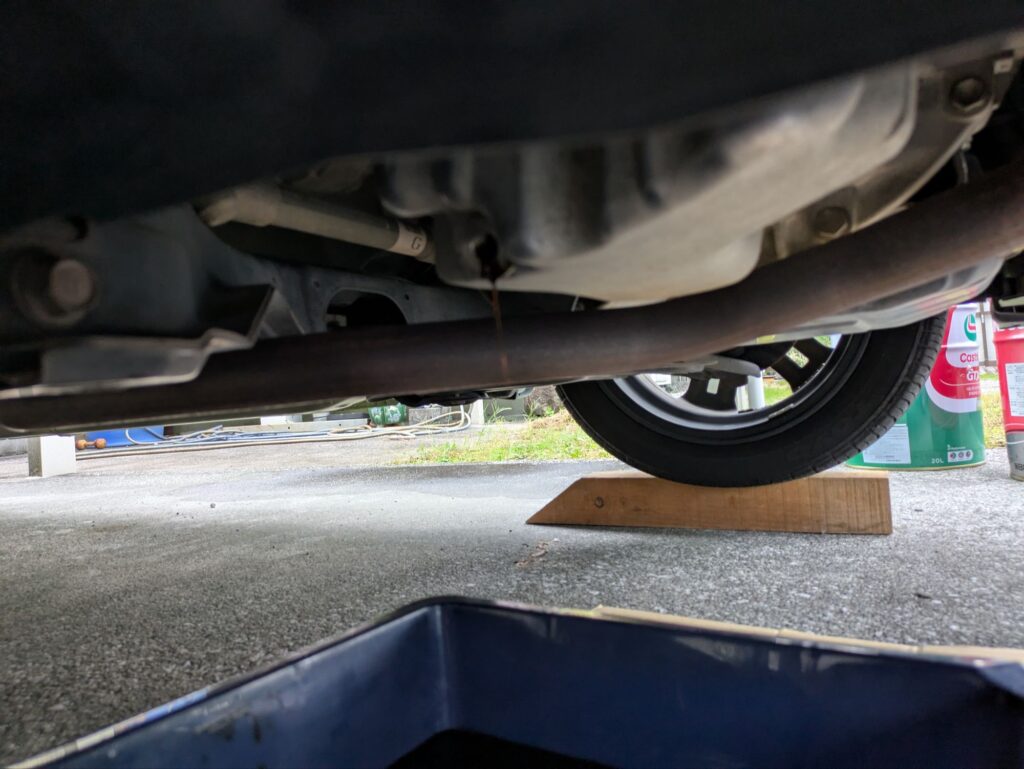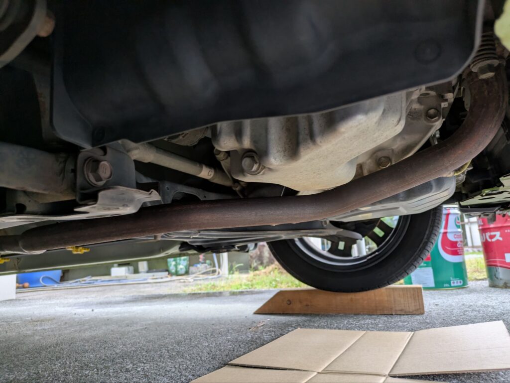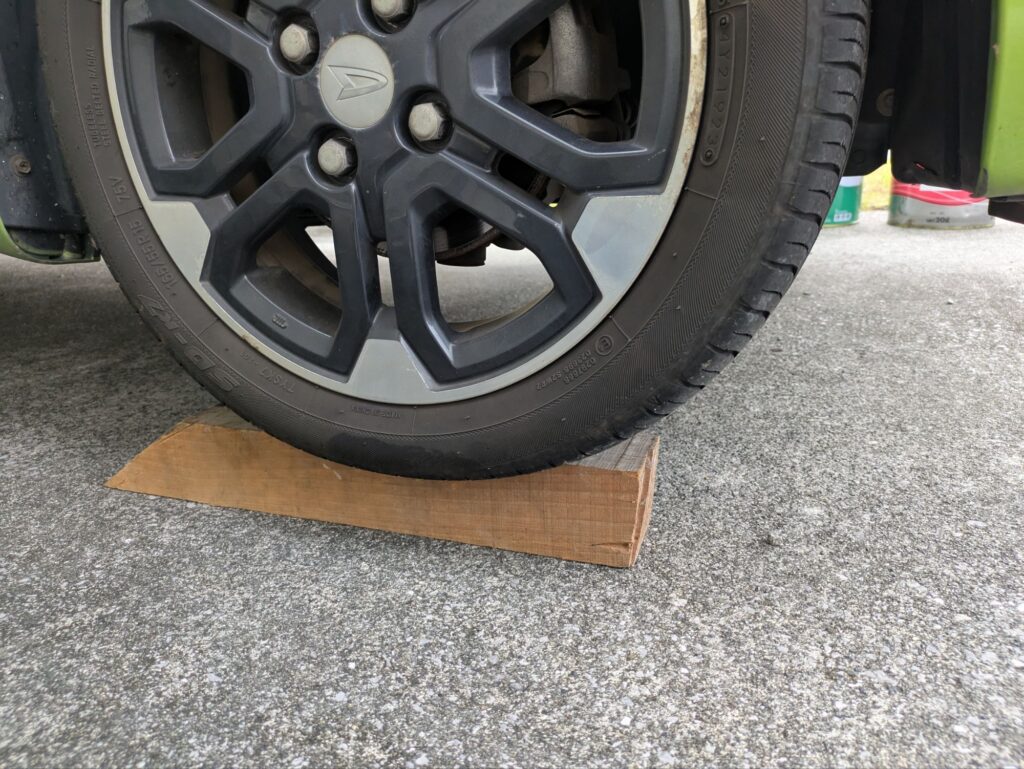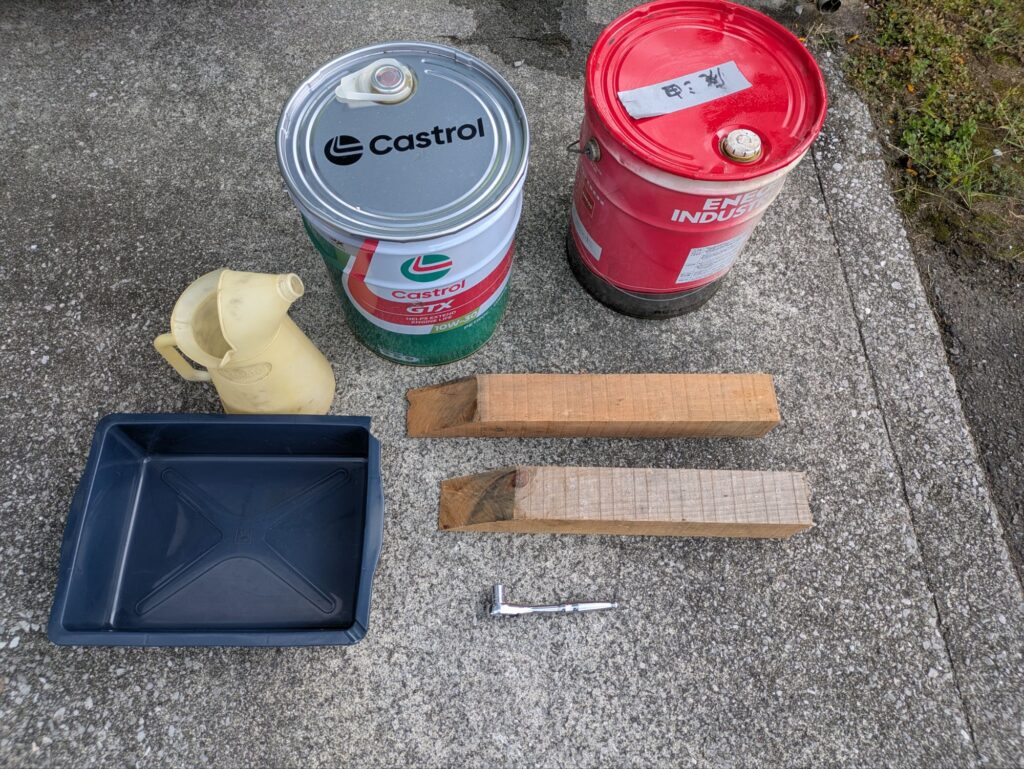 前回はエンジンオイルとオイルフィルターを同時に交換しましたが、今回は木のスロープを用意して安くオイル交換をしていきたいと思います。
