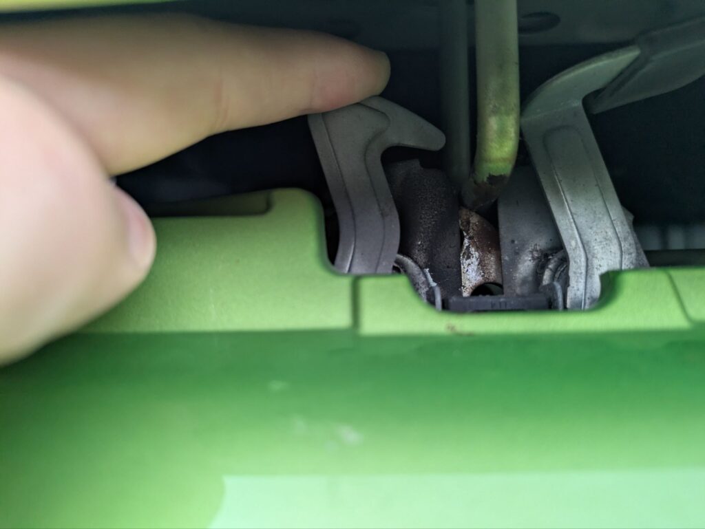 オイルフィラーキャップが固い場合、プライヤーなどの工具で掴んで緩めます。