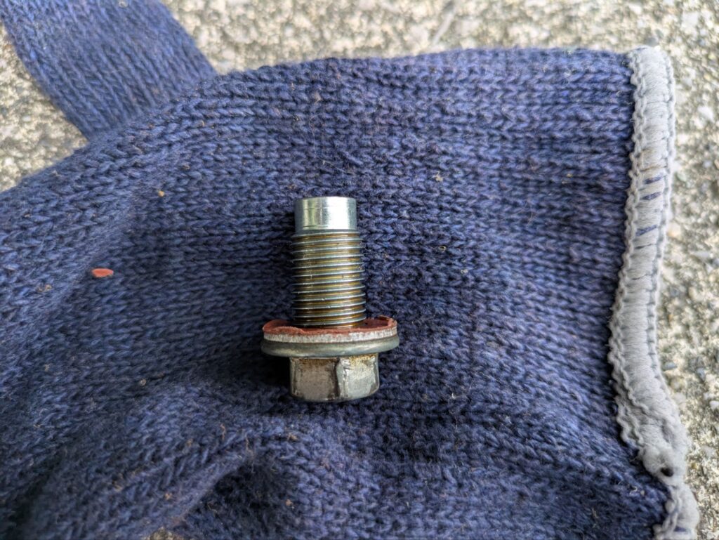 抜いたドレンボルトです。ドレンワッシャーが固着して手では取れませんでした。