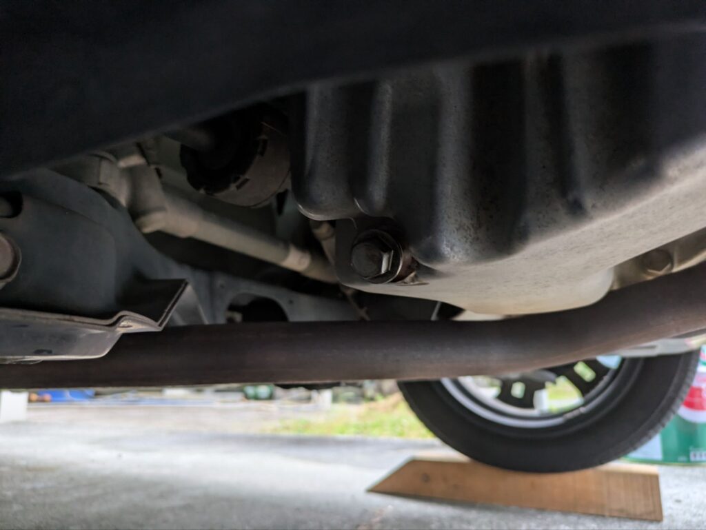 オイル漏れしているかどうかわからなくなるので、オイルパンの周りにオイルが付着していたらパーツクリーナーで拭いておきましょう。