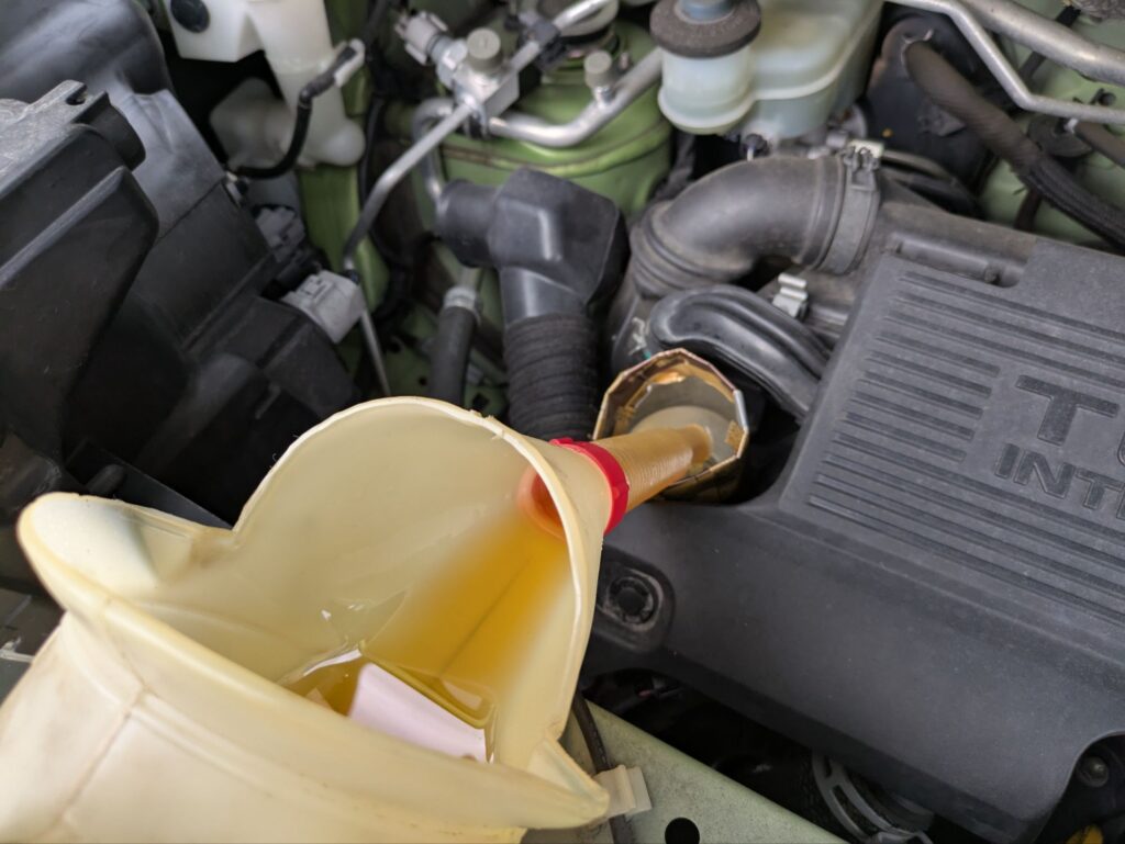 オイルフィラーキャップを緩めて、新しいオイルを注ぐ
