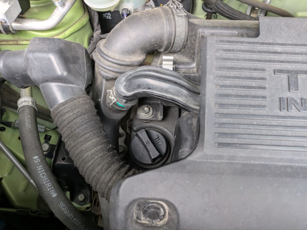 オイルを注いだらオイルフィラーキャップを締めて完了です。
