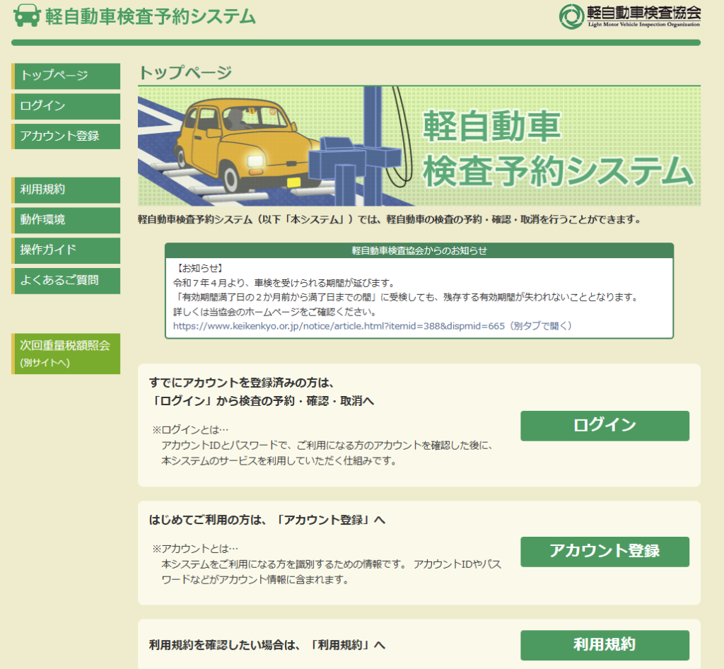 まずは住んでいる地域に該当する車検場で車検を受けるために、車検予約をします。車検は車検満期日から2か月前より受けることで、車検期間を短くすることなく継続することができます。そのため、1回目車検落ちても整備して再車検の期間を作れるよう、2か月前あたりから受けるのがおススメです。