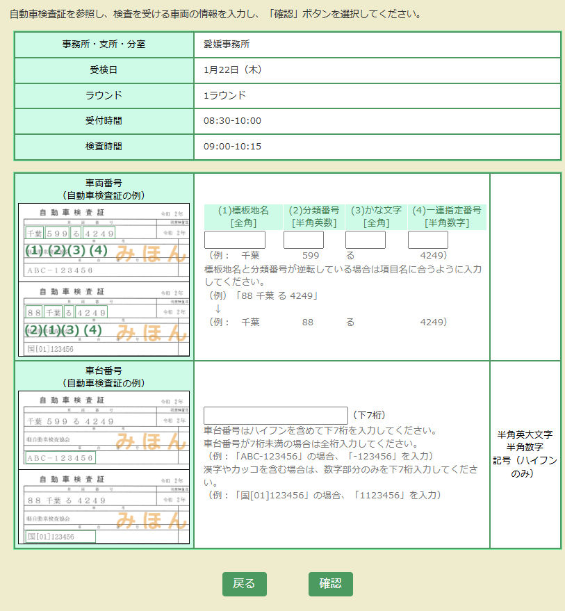 その後車検を受ける日時を設定して、確認ボタンを押します。