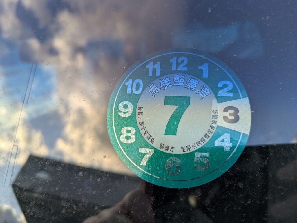 初めてユーザー車検を行う方はフロントガラス左上に点検整備済のステッカーがあると思いますので、剥がします。ステッカーがあると、余計なものを張り付けているとして車検失格の対象になります。