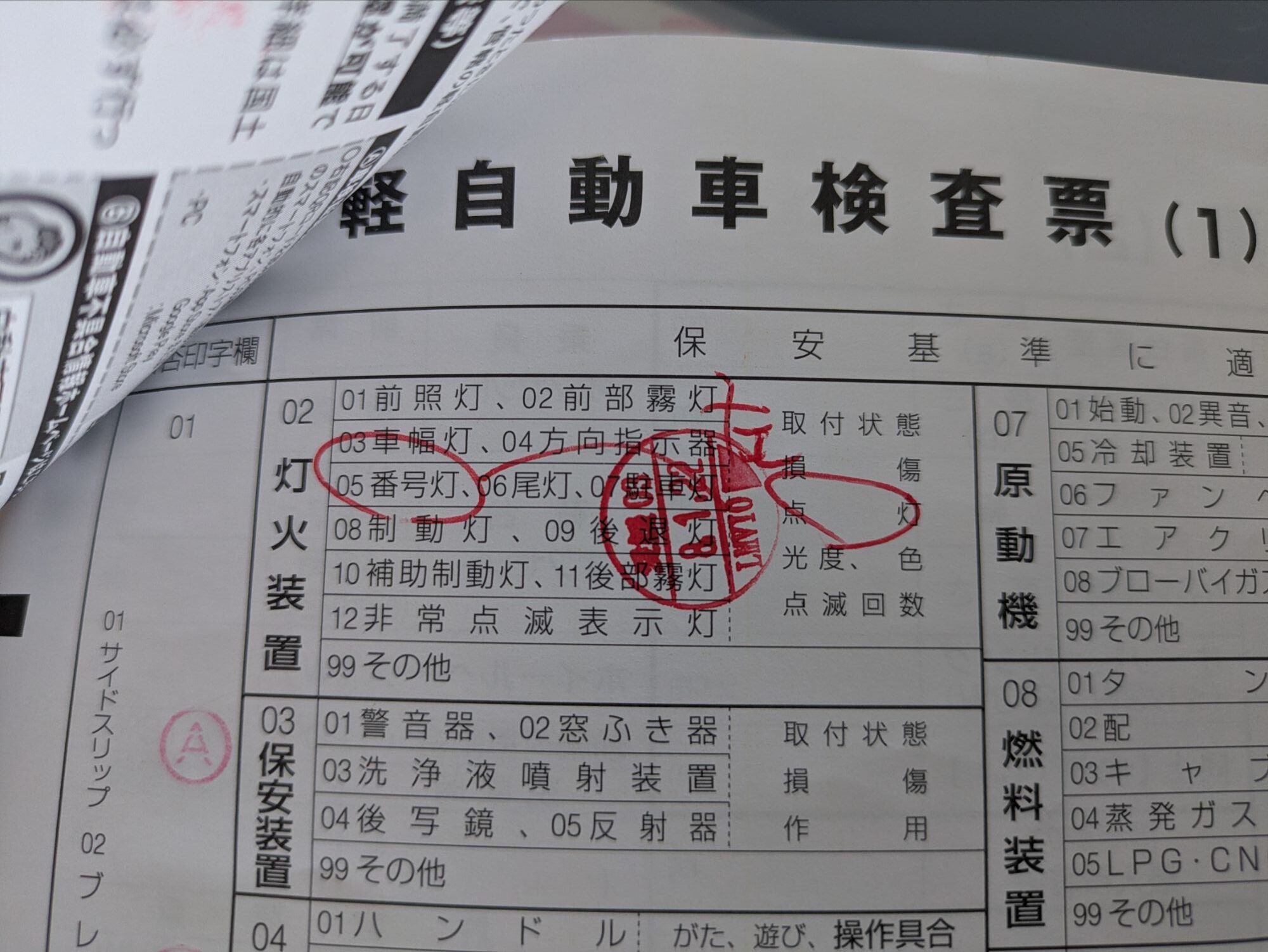 車検レーンが一発で行けばいいですが、不備があった場合は当日中に修理して再検査を受けることができます。今回、ウェイクの左側のナンバー灯が切れてました。