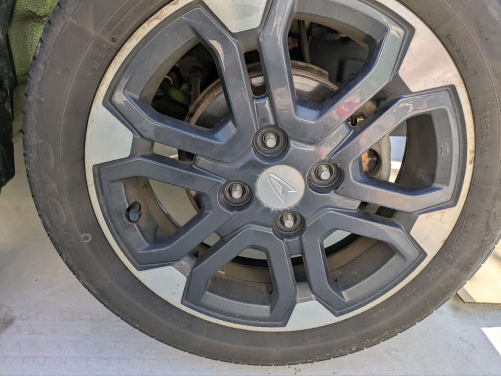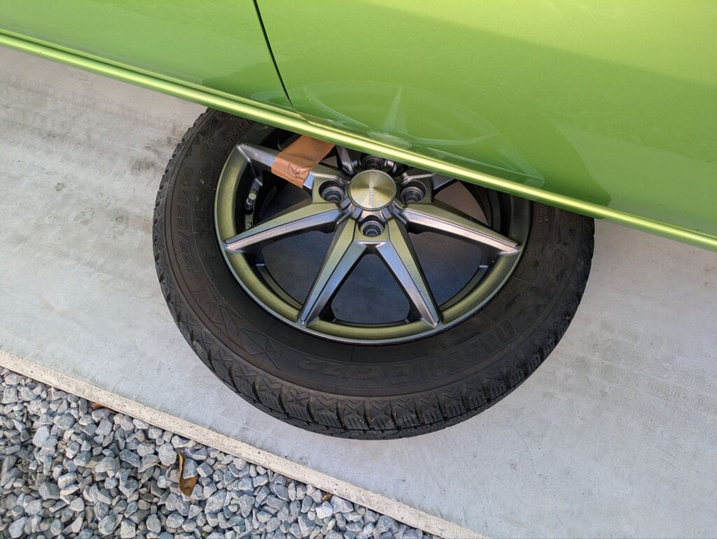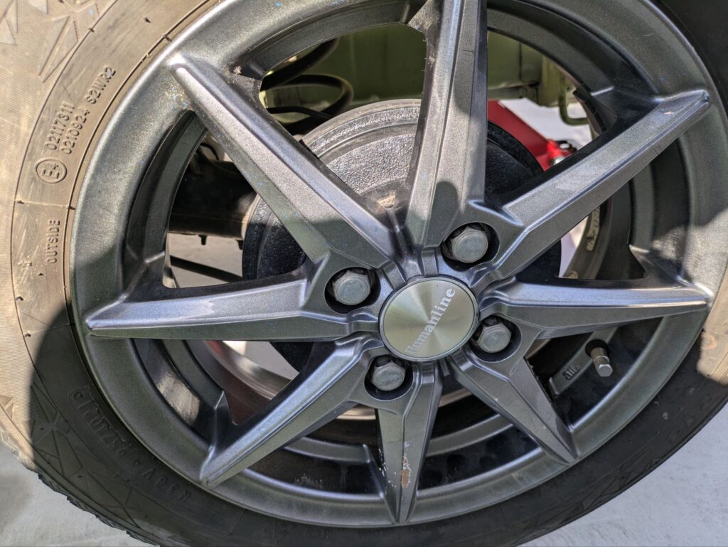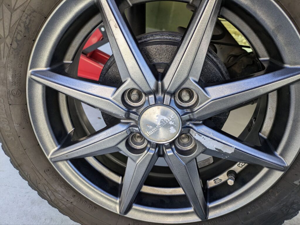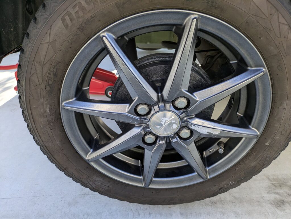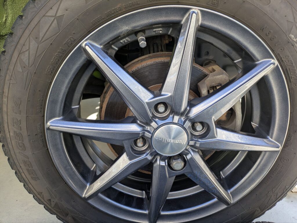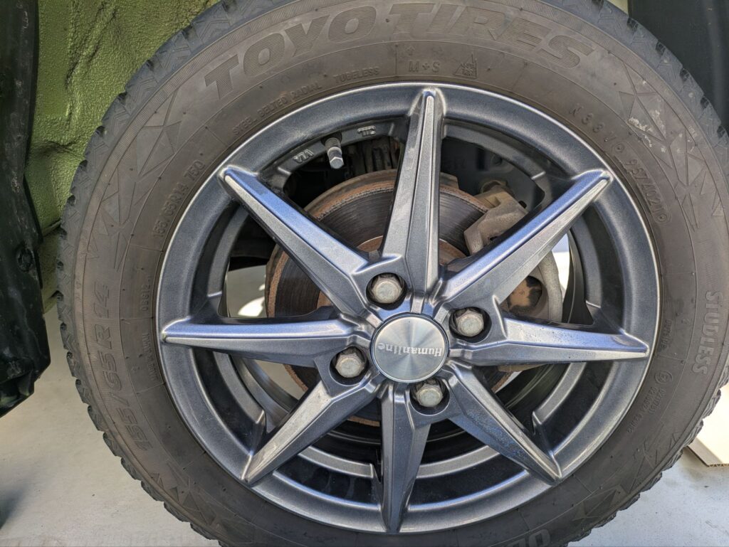 最後はフロントタイヤを外して、スタッドレスタイヤをつけて完了です。