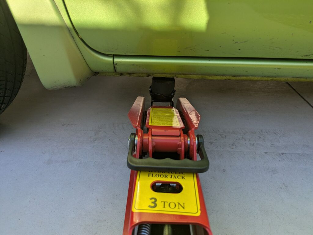 ジャッキで右フロント側を上げる|ジャッキアップポイントの解説