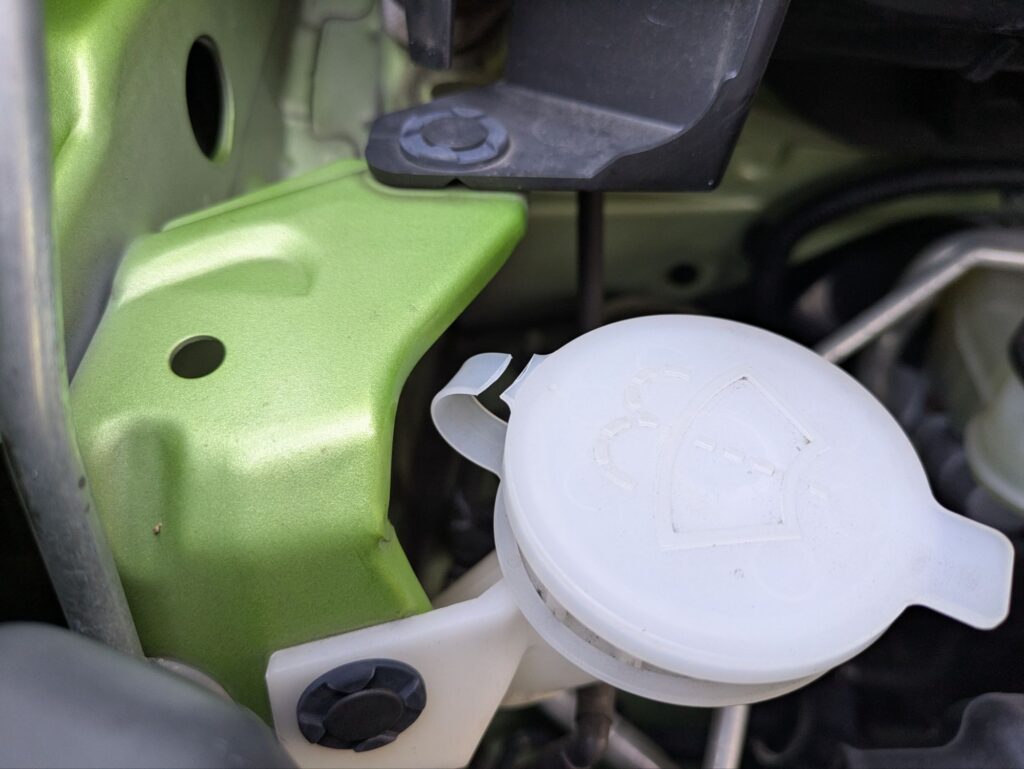 ボンネット左側のウィンドウォッシャー液を注ぐところのフタを開く