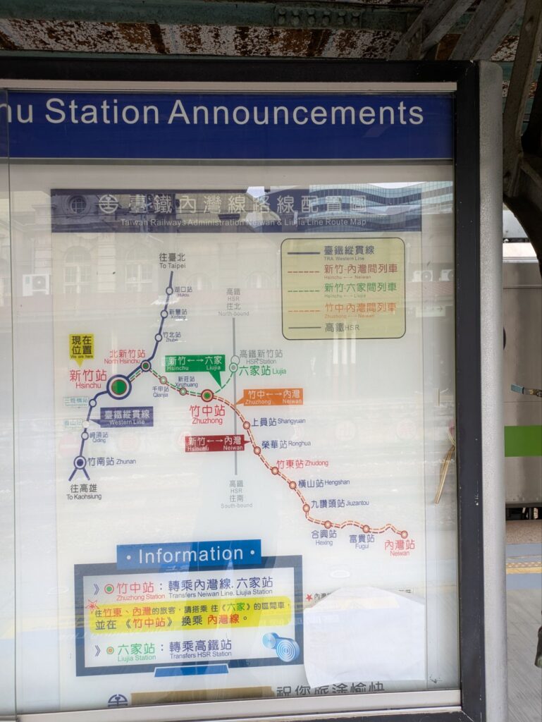 新竹駅の路線図です。青色の路線を使って行きます。